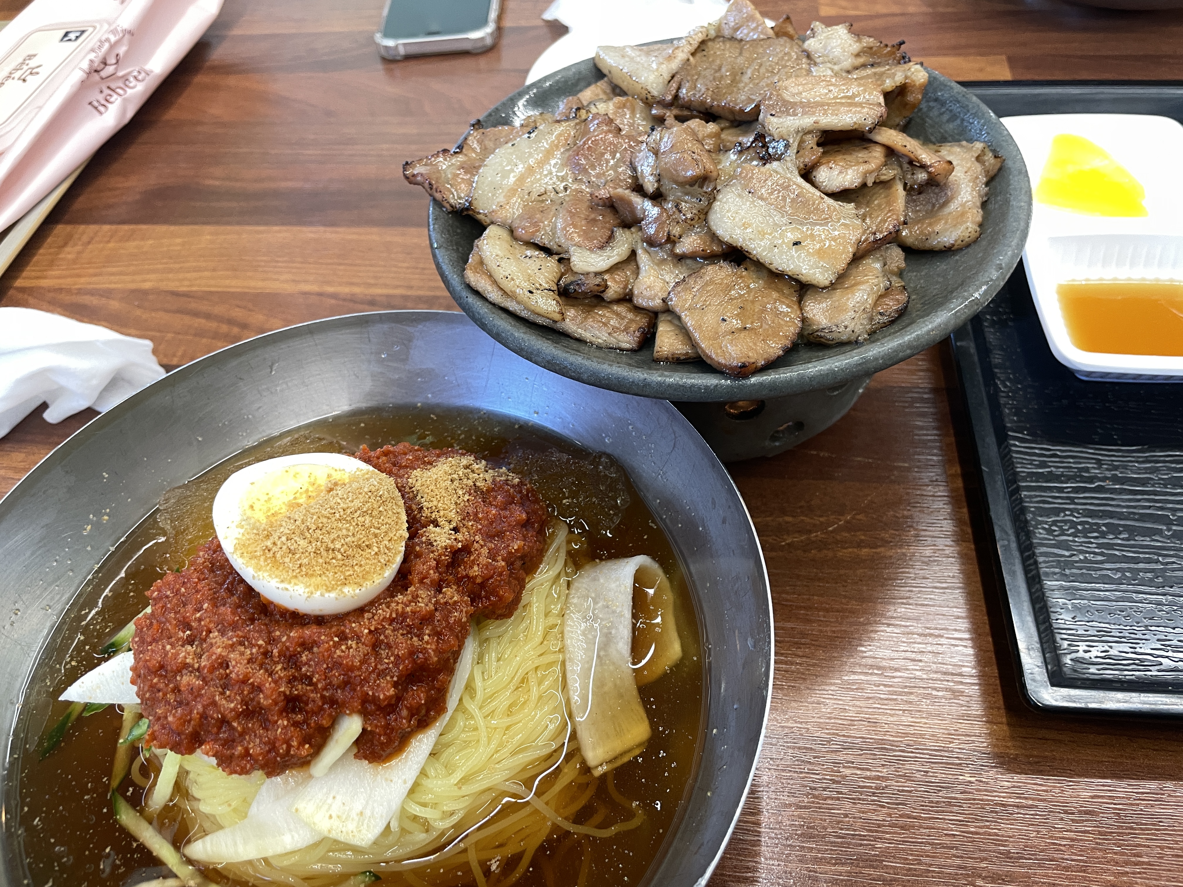 석쇠는 불맛이 나고 달달했으며 밀면과 잘 어울렸다.